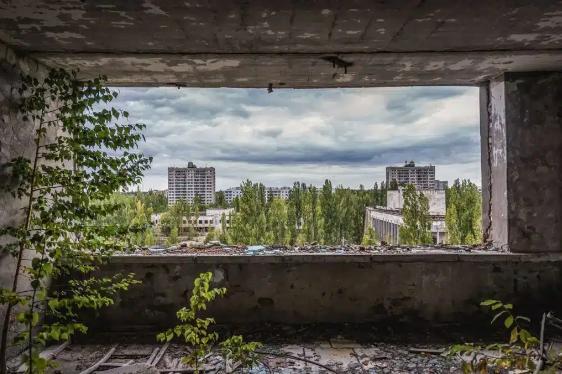Чернобыльская зона отчуждения стала третьим по величине природным заповедником в континентальной Европе – неожиданный пример восстановления природы. На снимке: гостиница в заброшенном городе Припять в Чернобыльской зоне отчуждения, Украина. (Фото Credit: Fotokon via Shutterstock Images)