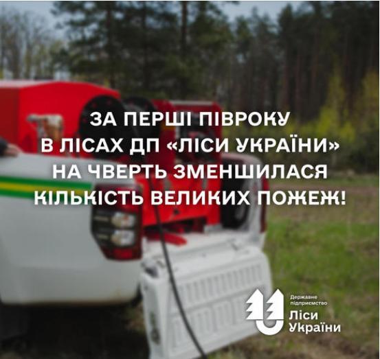 Підбиваємо підсумки роботи підприємства у напрямку протидії пожежам. Кількість великих пожеж у порівнянні з першим півріччям минулого року зменшилася на 25%. Сталося всього 4 випадки площею понад 5 га.