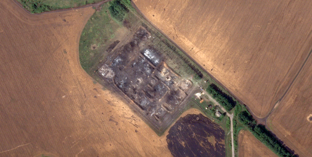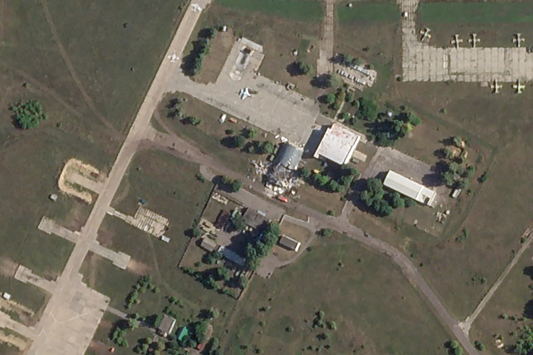 Разрушенные и сожженные здания на военном аэродроме в Липецке, Россия, 9 августа. Фото…Планета Лабс