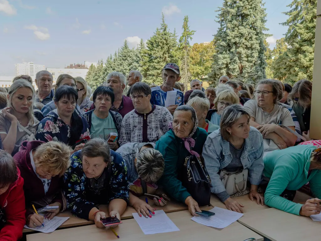 Вынужденные переселенцы из России обращаются за помощью в город Курск, где правительственный цирк функционирует как центр помощи. Фото…Нанна Хайтманн для The New York Times