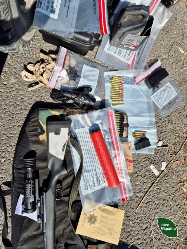 Всі докази злочину наявні: в авто вилучили тепловізор, зброю з оптичним прицілом, набої. А також уже розчленовану тушу оленя європейського.