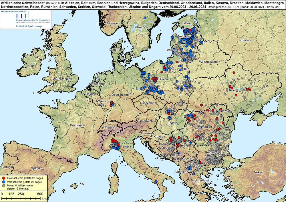 В дополнение к украинской информации о распространении АЧС, широко растиражированной в последнюю неделю, в конце материала мы приводим свежую ( на 20 августа 2024 года) карту распространения АЧС в Европе. Ни одного случая поражения диких свиней в Украине на ней мы не видим. Это говорит о том, что взаимодействие украинских и европейских профильных специалистов и организаций находится на нулевом уровне. Кроме того очевидно, что в отсутствии охотников, в нашей стране просто некому было поставлять информацию о случаях АЧС среди диких свиней, поэтому реальной ситуации в стране Держпродспоживслужба просто не знает. Это значит что: