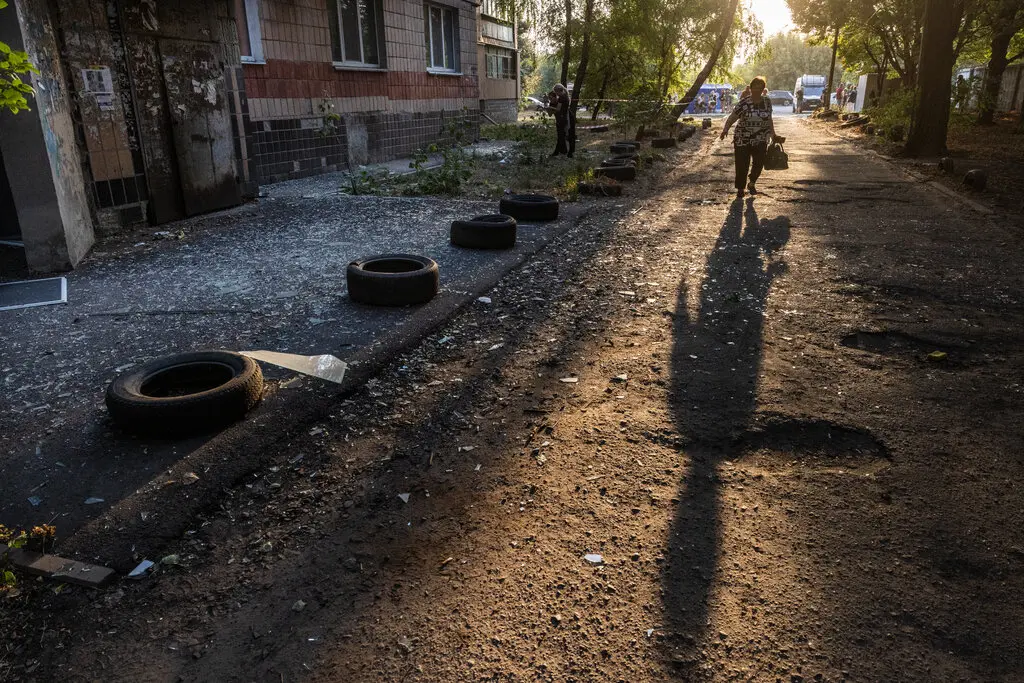 Житель поврежденного многоквартирного дома, примыкающего к военному училищу в Полтаве, идет по осколкам стекла. Фото…Дэвид Гуттенфельдер для The New York Times