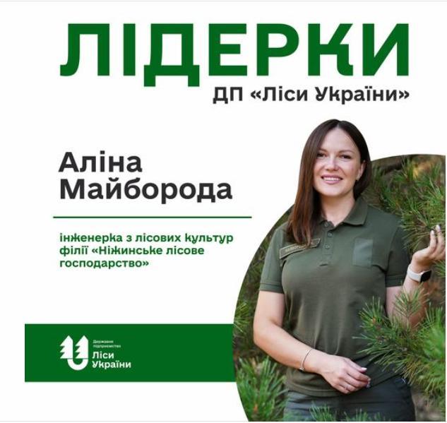Успішна кар’єра в ДП «Ліси України» залежить від знань, навичок і пристрасті до справи, а не від статі. Я переконана, що жінки можуть і повинні відігравати важливу роль у розвитку лісової галузі, зокрема у впровадженні інноваційних підходів до збереження та відновлення лісів», — говорить учасниця проєкту «Лідерки ДП «Ліси України» Аліна Майборода.