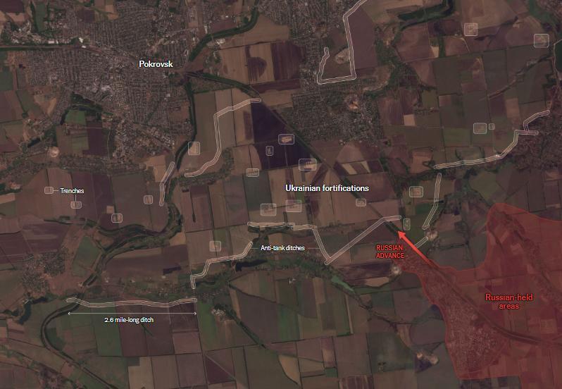 Продвижение к Покровску стало самой успешной частью наступления России на Донбассе этим летом. В других местах она атаковала большую часть восточной линии фронта, но после нескольких месяцев ожесточенных боев добилась лишь скромных успехов. Например, продолжавшееся год наступление на город Часов Яр на вершине холма продвинулось примерно на три мили.