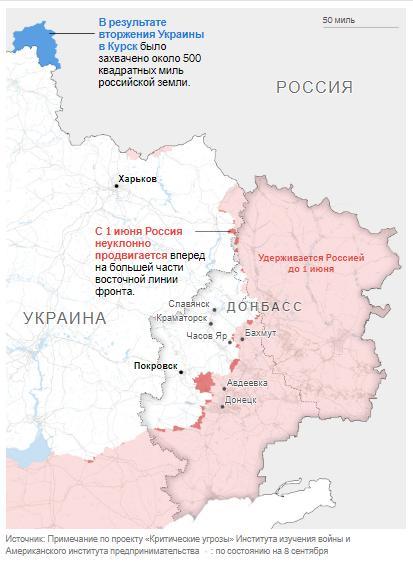 Источник: Заметка по проекту «Критические угрозы» Института изучения войны и Американского института предпринимательства: по состоянию на 8 сентября