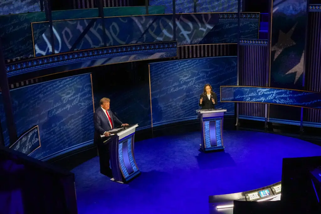 Бывший президент Дональд Трамп и вице-президент Камала Харрис дебатируют в Филадельфии во вторник. Фото…Дуг Миллс/Нью-Йорк Таймс