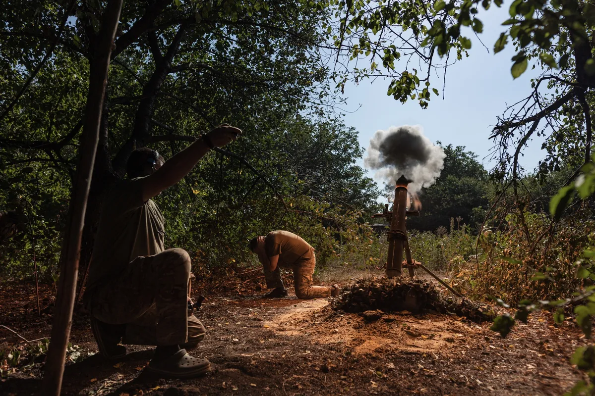 Украинские солдаты ведут минометный огонь в направлении Торецка 18 августа.Фотограф:Диего Эррера Карседо/Anadolu /Getty Images