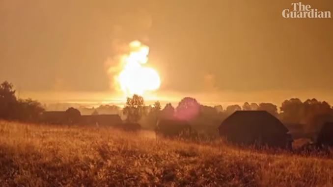 Пророссийские военные блогеры заявили, что Украина нанесла удар по арсеналу для хранения ракет, боеприпасов и взрывчатых веществ в Торопце, историческом городе более чем в 300 милях к северу от Украины и примерно в 230 милях к западу от Москвы.