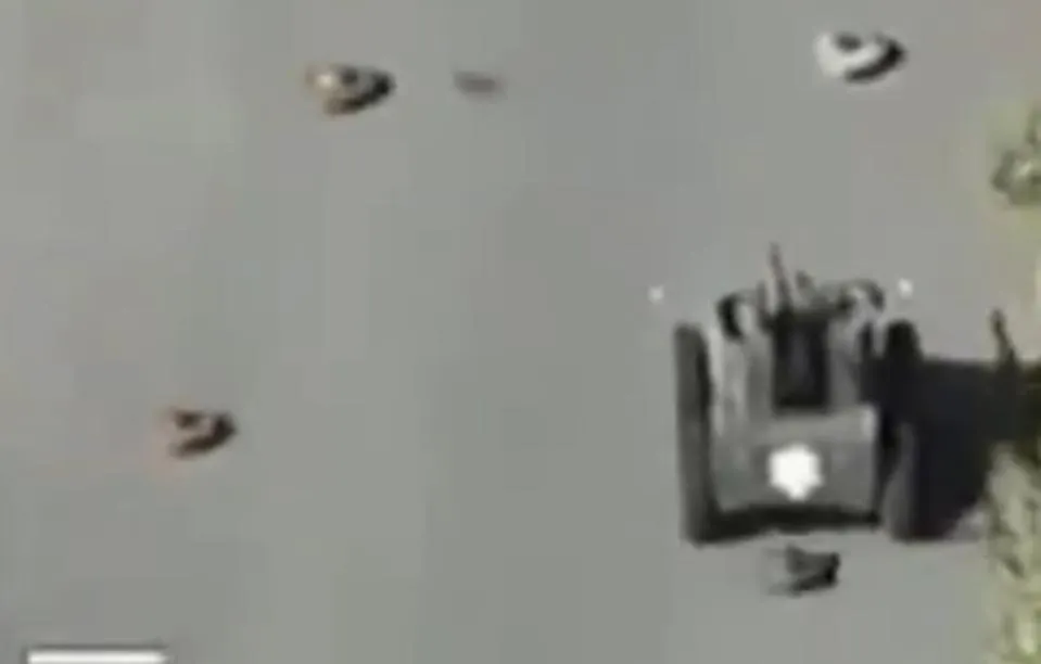 За двухминутным видео с дрона нелегко следить, с внезапными обрывами и изображениями, которые может быть трудно расшифровать. На первых кадрах российские солдаты идут пешком, занимая что-то похожее на оборонительную позицию, скрытую в растительности на дорожной развязке.