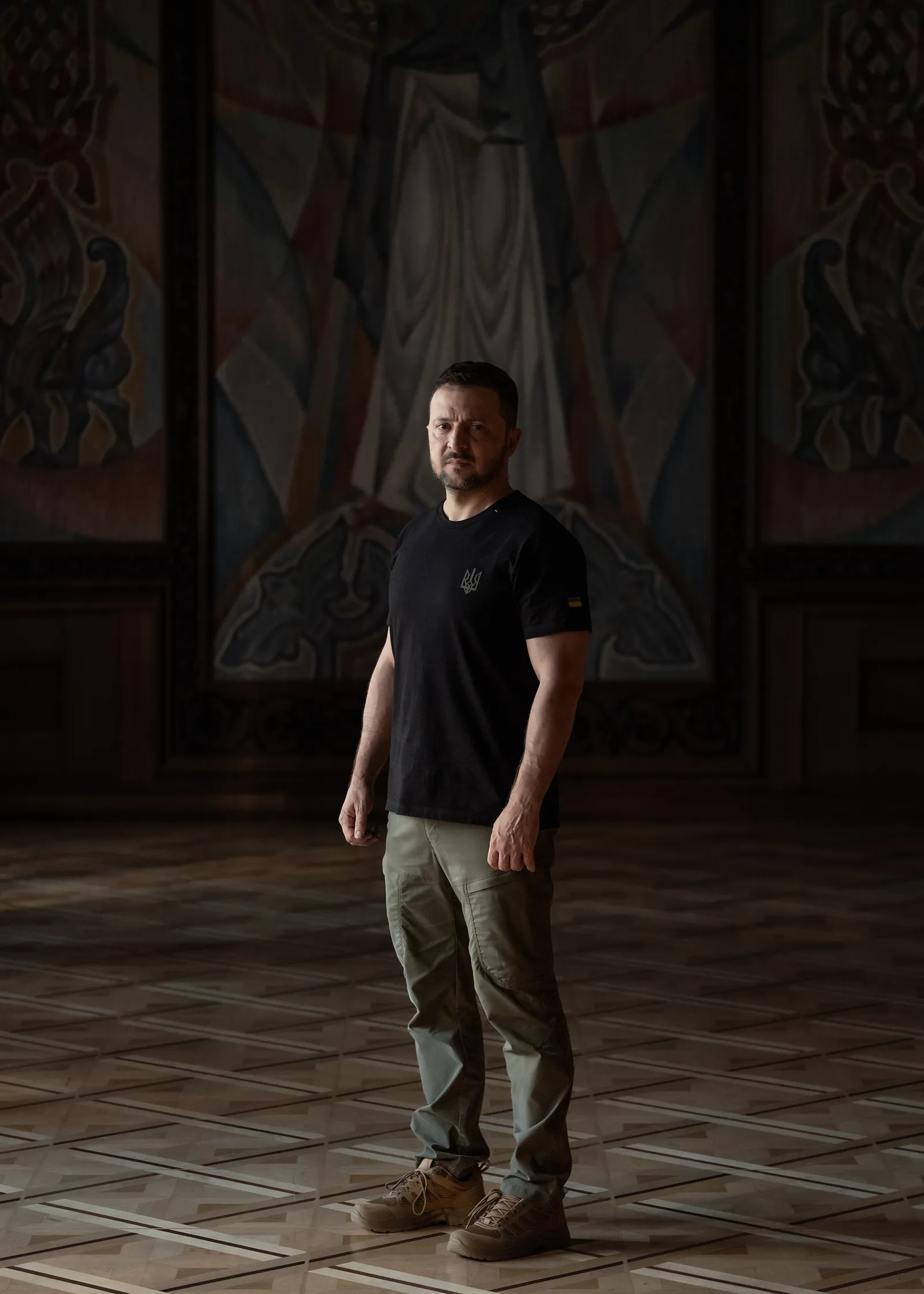 Ситуационная комната Владимира Зеленского, где президент Украины следит за развитием событий в войне своей страны с Россией, представляет собой комнату без окон, в основном занятую прямоугольным столом для совещаний и окруженную затемненными экранами, в глубине здания администрации президента в центре Киева. Недавно днем, когда я сидел внутри в ожидании Зеленского, я услышал его голос — сиропный баритон, испещренный гравием, — прежде чем он вошел, одетый в свой фирменный военный стиль: черная футболка, оливково-серые брюки, коричневые ботинки. Он был в разгаре подготовки к поездке в США, где он должен выступить на Генеральной Ассамблее Организации Объединенных Наций и, что особенно важно, встретиться с Джо Байденом в Белом доме, чтобы представить то, что Зеленский назвал «планом победы» Украины.
