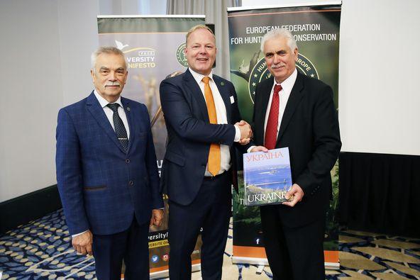 Днями делегація з України у складі президента Всеукраїнська асоціація мисливців та користувачів мисливських угідь (ВАМКМУ) Віктора ЧЕРВОНОГО і голови Громадської ради при Держлісагентстві, члена Науково-технічної ради ВАМКМУ, завідувача сектору наукового забезпечення Департаменту розвитку та інвестицій ДП «Ліси України» Петра ЛАКИДИ, відвідала Генеральну асамблею Федерації мисливських та природоохоронних асоціацій Європи (FACE – European Federation for Hunting and Conservation) у Брюсселі.