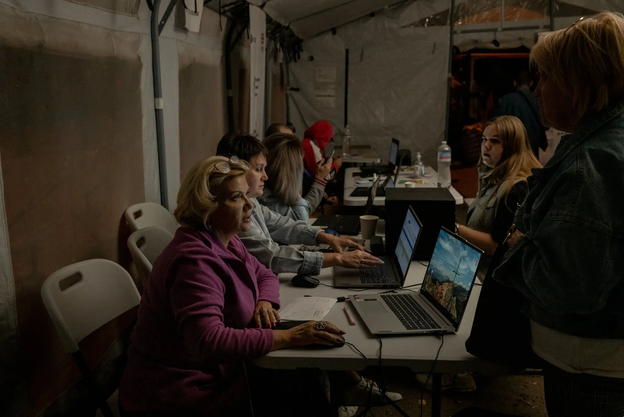 Волонтери та гуманітарні працівники надали допомогу евакуйованим з Покровської області після того, як вони прибули до транзитного центру на Дніпропетровщині. Фото…Ніколь Тунг для The New York Times