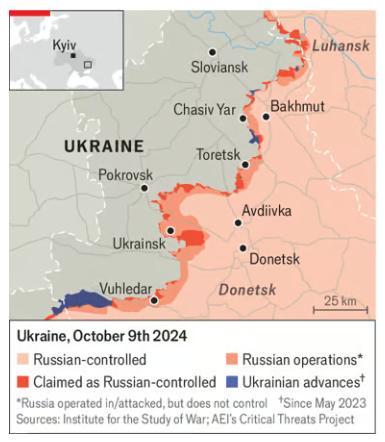 Несмотря на высказываемые в некоторых кругах опасения по поводу краха Украины, никаких его признаков нет. Подход Украины заключается в том, чтобы уступить некоторые территории, нанеся России максимальные потери в живой силе и технике и сохранив свои собственные силы для борьбы с недавно укрепленных линий. Также сомнительно, как долго Россия сможет продолжать терять более тысячи человек в день, несмотря на огромные бонусы для новобранцев. Кажущиеся неисчерпаемыми запасы, в основном бронетехники и танков советской эпохи, могут закончиться к следующему году. По оценкам Института изучения войны в Вашингтоне, только в Покровской области Россия за прошлый год потеряла не менее пяти дивизий танков и бронемашин. Без достаточной брони спешенные российские солдаты становятся легкой добычей для все более мощных украинских FPV-беспилотников.