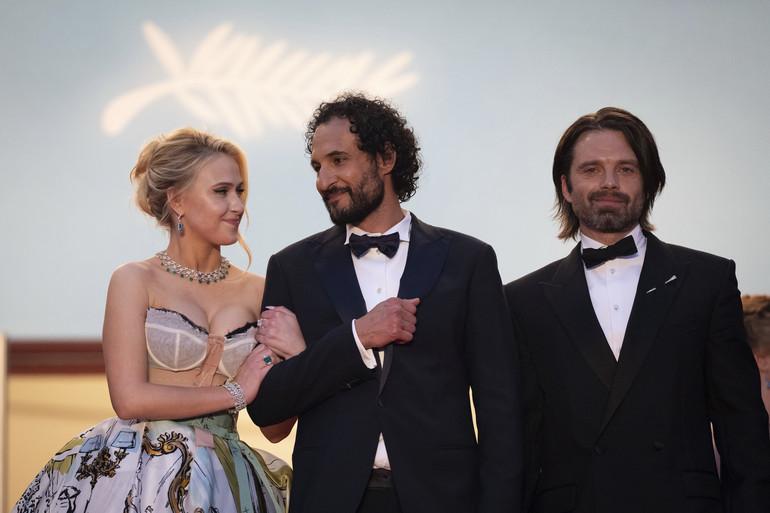 Актриса Мария Бакалова (слева направо), режиссер Али Аббаси и актер Себастьян Стэн позируют на премьере фильма «Ученик» на 77-м Каннском кинофестивале 20 мая 2024 года. | Скотт А. Гарфитт/Invision/AP