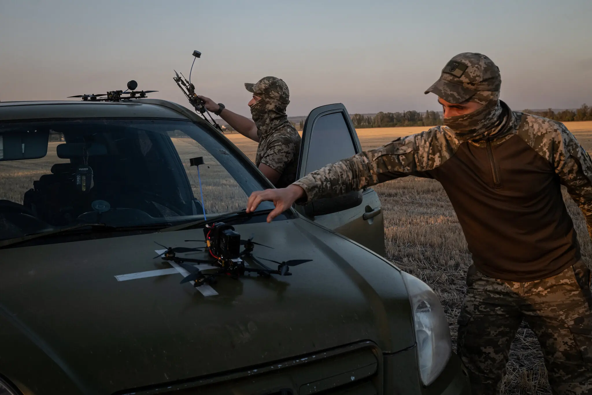 Украинские операторы беспилотников готовятся к испытанию нового беспилотника в прошлом месяце в Донецкой области на востоке Украины. Фото…Николь Тунг для The New York Times