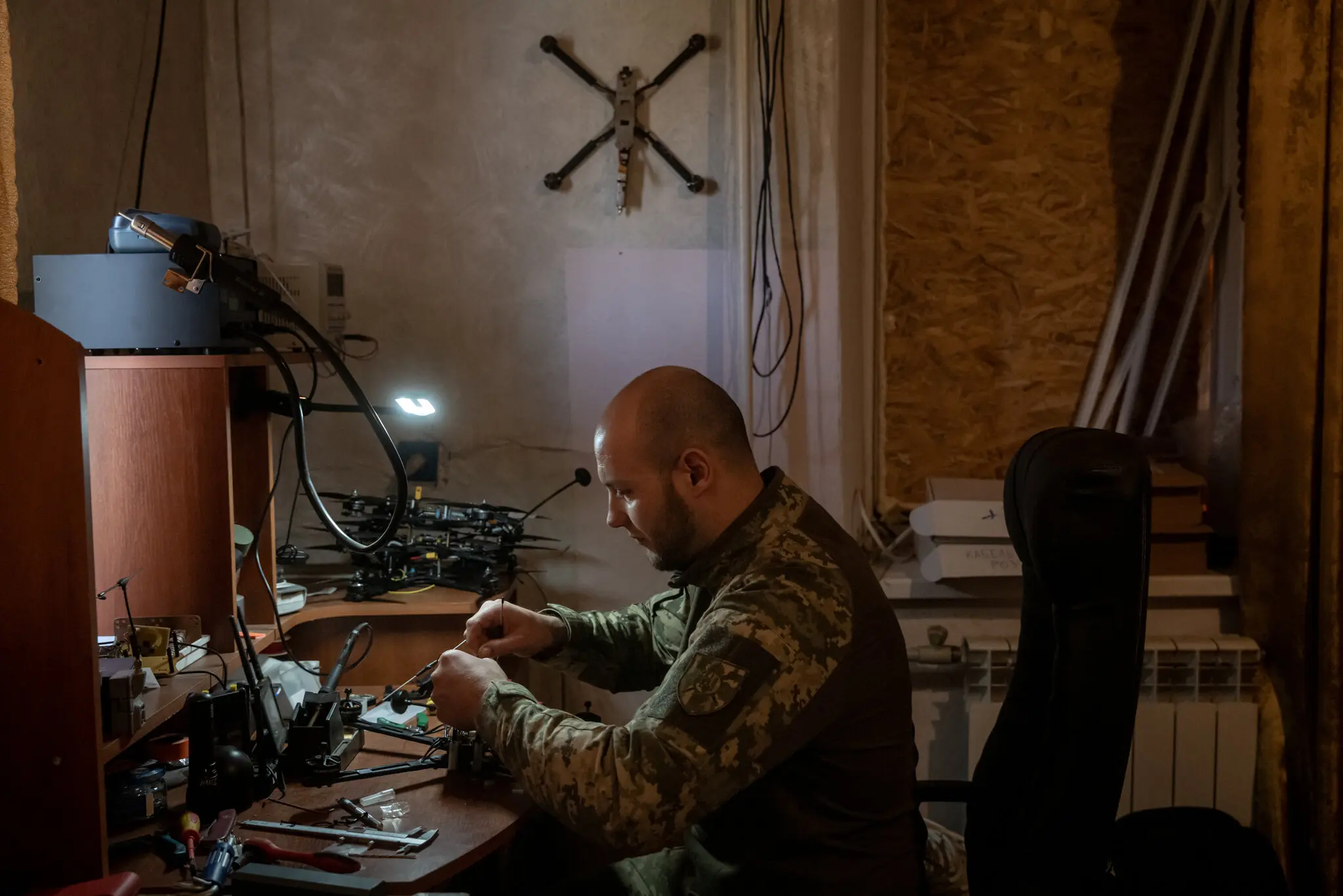 Командир батальона собирает беспилотник. Фото…Николь Тунг для The New York Times