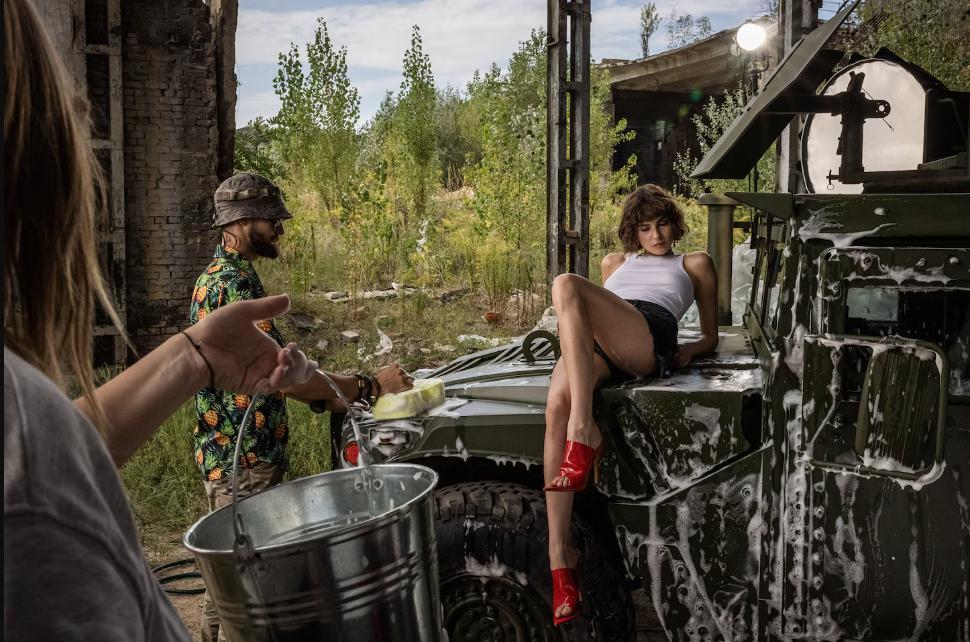 Профессиональная фотосессия была первой для солдата — тяжело раненный в Бахмуте и снова в Авдеевке, он вернулся в Киев, чтобы выздороветь. Вскоре он вернется в бой вместе с Humvee. Несмотря на то, что дневные мероприятия говорят об обратном, он и творческая команда знают, что продукт, который они продают, более серьезен, чем можно было бы предположить по кампании.