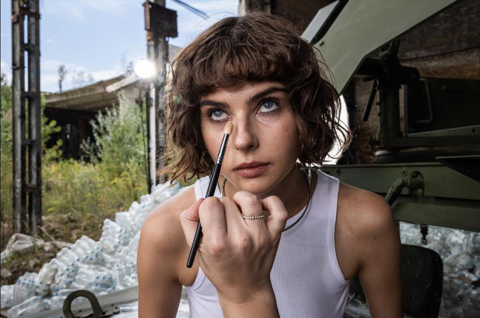 Модели Марии наносится макияж на съемочной площадке для следующей военной кампании 3-й штурмовой бригады. (Эд Рам для The Washington Post)