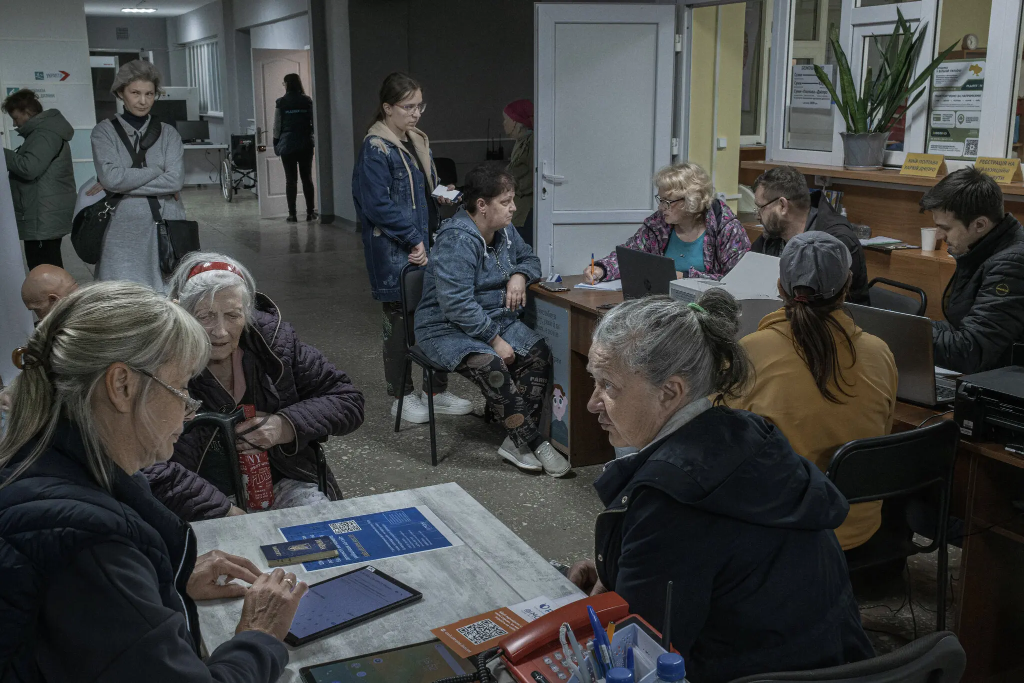 Украинцы в регистрационном центре в Сумах, Украина, после прибытия с оккупированных Россией территорий. Фото…Маурисио Лима для The New York Times