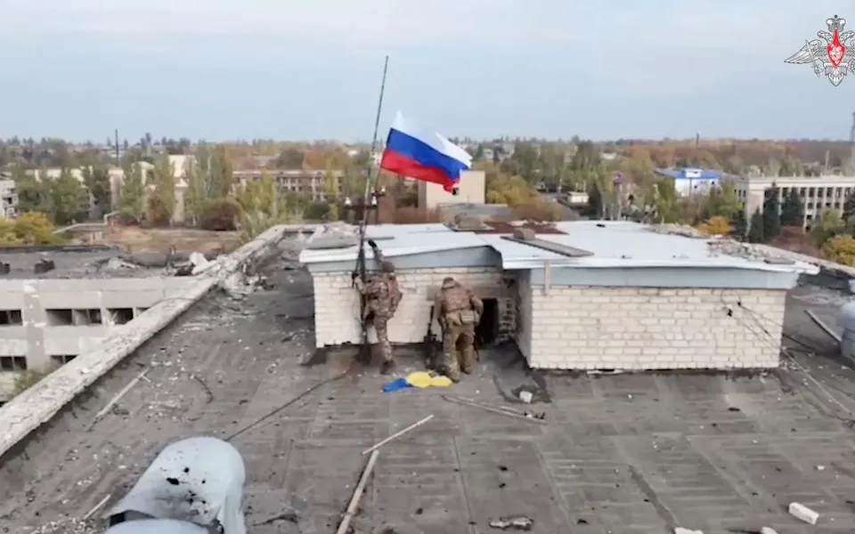 Российские войска водрузили флаг в Селидово на востоке Донецка Фото: Минобороны России