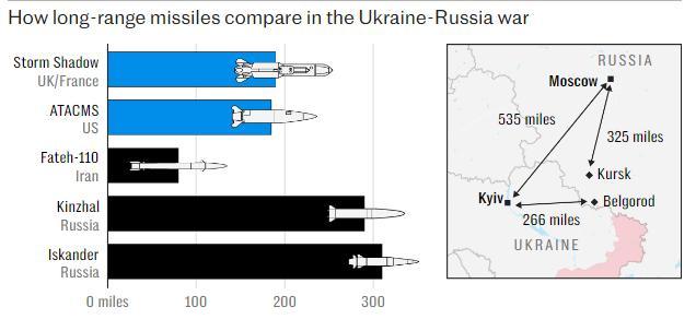 Эти правила привели к дисбалансу огневой мощи. Россия ежемесячно наносит удары по украинским городам, базам и промышленным объектам тысячами беспилотников и баллистических и крылатых ракет. Украинцы нечасто наносят ответные удары десятками гораздо более легких боеприпасов – в первую очередь беспилотников.