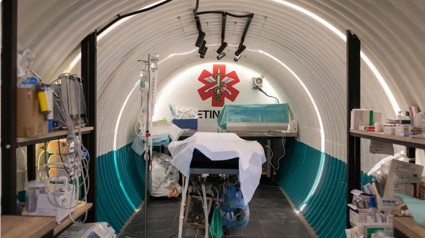 Глубоко в недрах южного фронта, первый подземный госпиталь в Украине похож на фильм о Джеймсе Бонде. Современные гаджеты начинаются с поступления. Раненые солдаты прибывают прямо с поля боя: на машинах, машинах скорой помощи, квадроциклах или чем угодно еще, что может их перевезти. Они оцениваются и распределяются по модулям в зависимости от срочности: случаи «красной зоны» для неотложных операций, «желтая зона» для других видов лечения. Рядом с операционной, заключенной в стальные бочки на глубине нескольких метров от уровня земли, находится отделение интенсивной терапии. Здесь есть аппарат искусственной вентиляции легких, и даже лаборатория для анализов крови. Центр предназначен для проведения сложных операций: восстановления костей, реконструкции мягких тканей и даже артериального шунтирования.