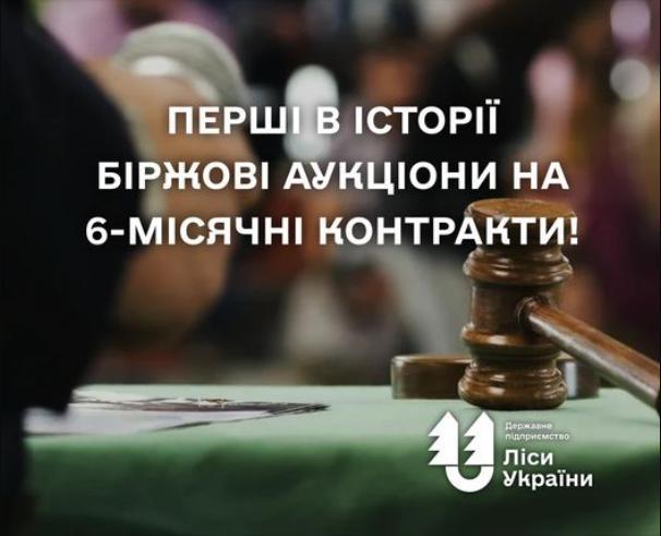 Нашим підприємством на торги було виставлено понад 416 тис. куб. м деревини: лісоматеріали круглі хвойні та дров’яна деревина. Обсяги лотів від 3 до 12 тис. кубометрів. Лоти вперше формувалися новоствореними філіями на базі Карпатський лісовий офіс, Столичний лісовий офіс, Поліський лісовий офіс, Центральний лісовий офіс та Північний лісовий офіс.