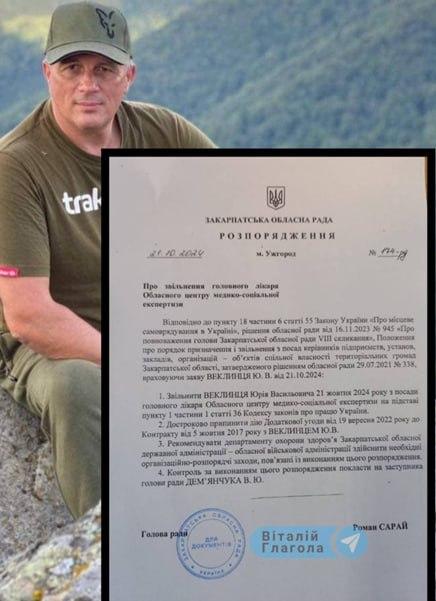 Розпорядження про звільнення керівника Закарпатської МСЕК