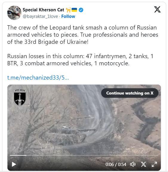 “Обмежена видимість і можливості ведення бою, коли ви “черепаха” на своєму танку, і раптом ви опиняєтеся в бою з Leo 2″, – уїдливо зауважив аналітик розвідки з відкритих джерел Мокласен.