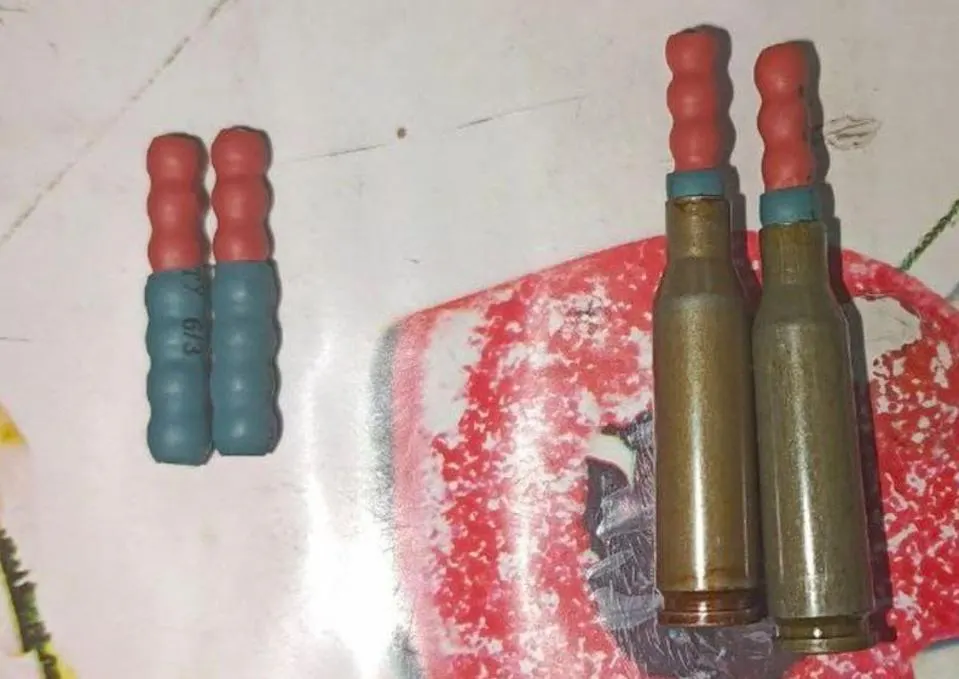 Картечь в термоусадочной упаковке (слева) и прикрепленная к патрону АК-74 вместо пули (справа) Российский Telegram через The Armourer‘s Bench