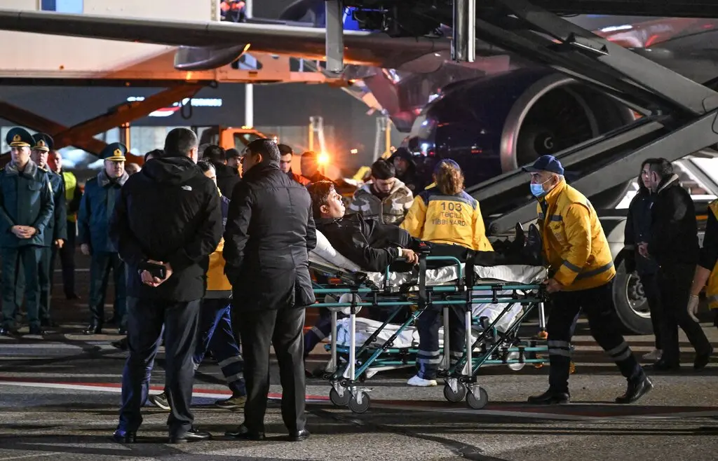 Спасатели с пассажиром, раненым в среду в авиакатастрофе в Казахстане, прибыли в четверг на медицинском самолете в аэропорт недалеко от Баку, Азербайджан. Фото…EPA, через Shutterstock