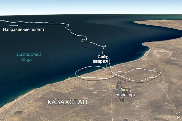 Авиалайнер Embraer 190 летел из Баку в Грозный, но отклонился от своего маршрута. В конце концов он разбился в Актау, Казахстан, после пересечения Каспийского моря. Более половины находившихся на борту людей были гражданами Азербайджана. В катастрофе погибли семеро россиян и шесть казахов.