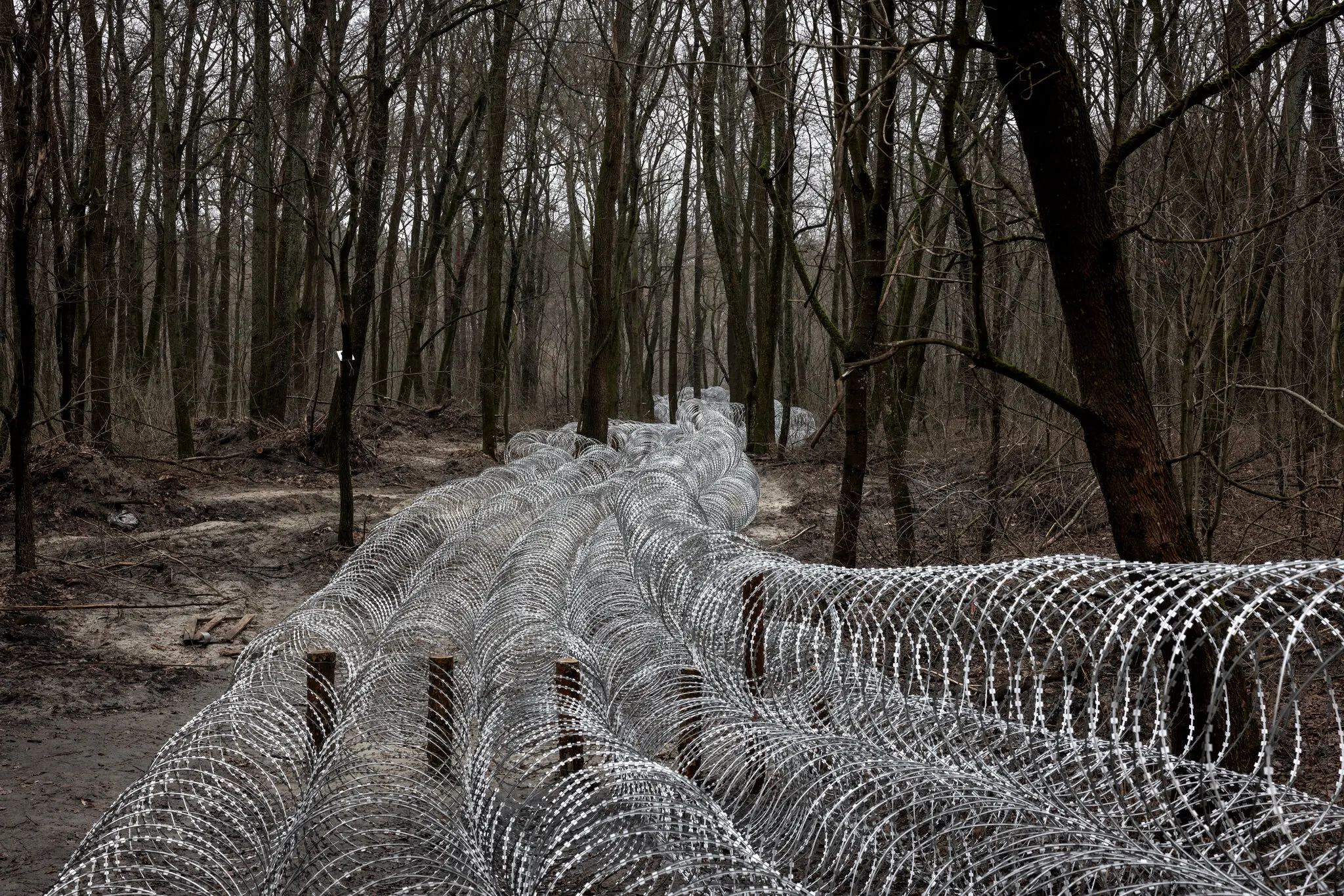 Украина установила фортификационные заграждения из колючей проволоки вдоль границы с Курской областью России.