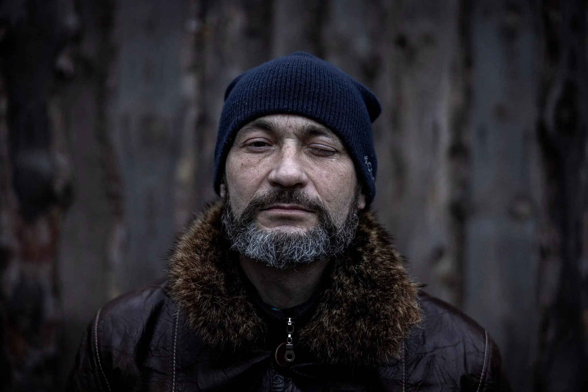 Украинский солдат в заброшенном доме в Сумской области после возвращения с боевых действий в России.