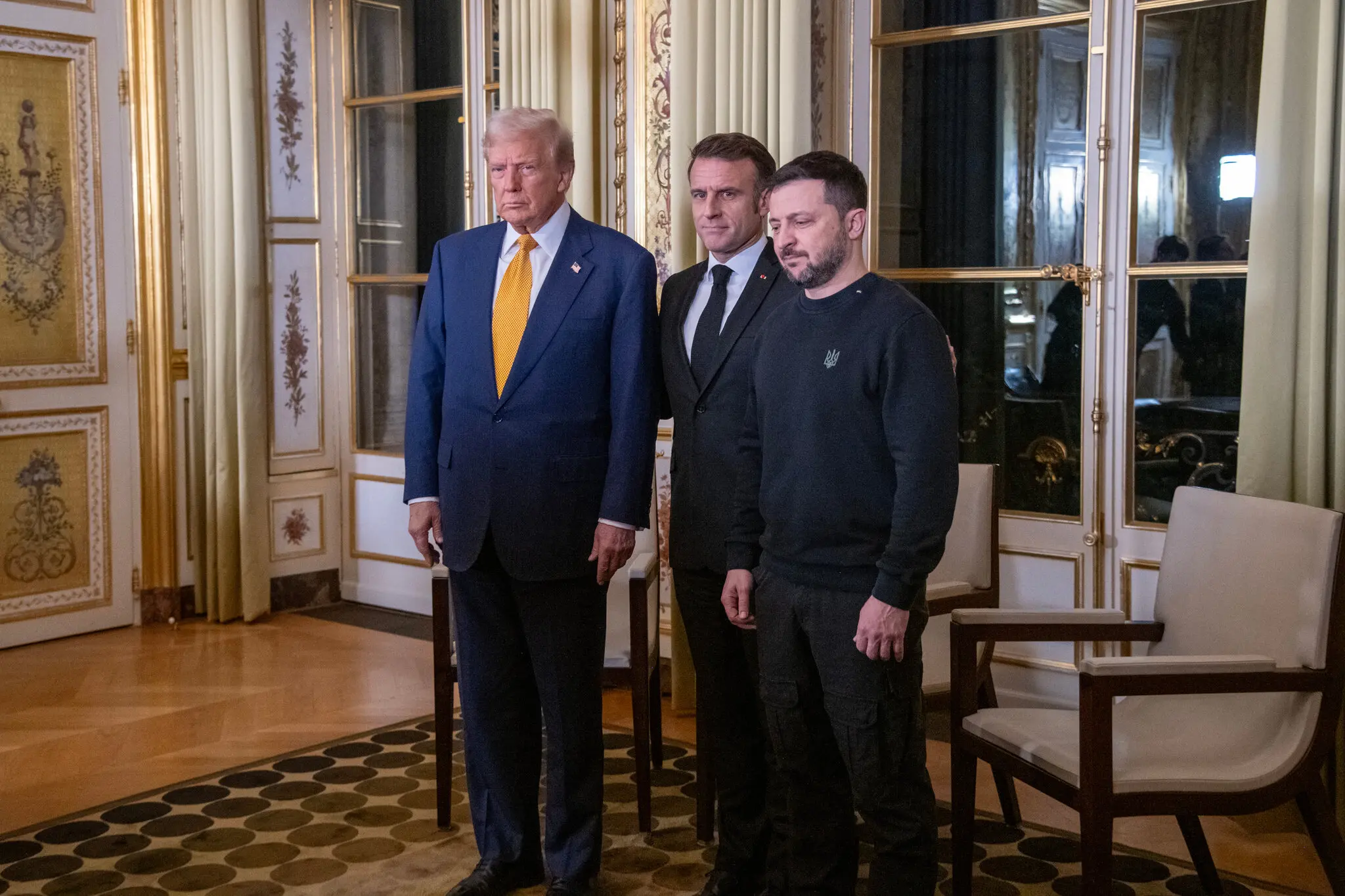 Трамп, Зеленський і президент Франції Еммануель Макрон у Парижі у грудні. Фото…Джеймс Хілл для The New York Times