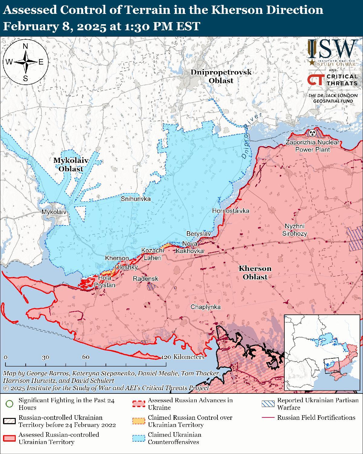 Ни российские, ни украинские источники не сообщали об активности на Херсонском направлении 8 февраля.