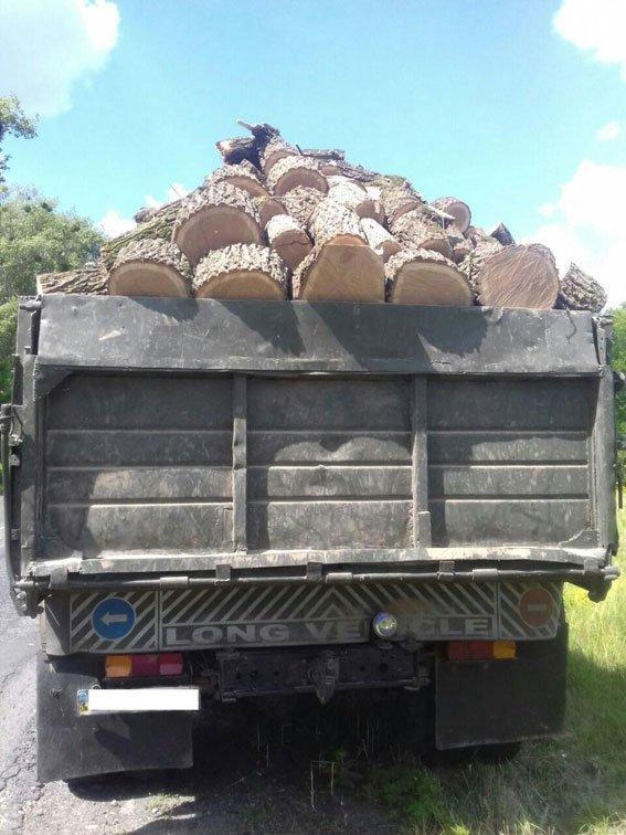 Під час перевірки документів та огляду транспортного засобу поліцейські встановили, що водій перевозив близько 6 м/куб кругляка дубу без відповідних документів.