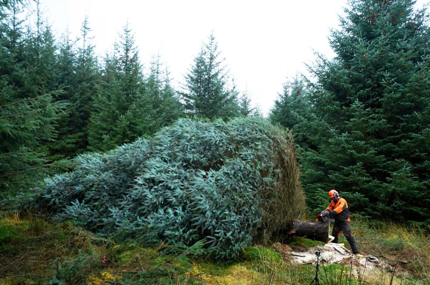 Инспектор Forestry England (Государственное лесное предприятие Англии) работает на срубленной ситхинской ели в Килдерском лесу Нортумберленда. Фотография: Owen Humphreys/PA