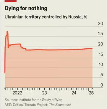Трамп прав, желая «остановить убийства». Если прекращение огня позволит Украине восстановиться, приведет к увеличению расходов на оборону в Европе и сохранит некоторые санкции в отношении скрипучей экономики России, это также может привести к тому, что амбиции Путина потерпят крах. Путин, однако, делает ставку на то, что он сможет воевать дольше, чем Украина, или что он сможет уговорить Трампа заключить сделку, которая позволит России реинтегрироваться в мировую экономику, сделает Украину разделенным и полунесостоятельным государством и оставит Европу слишком ошеломленной, чтобы защитить себя.