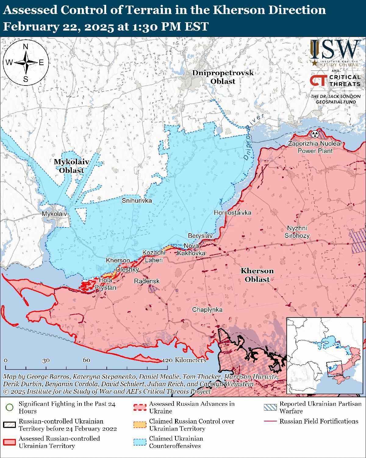 Ни российские, ни украинские источники не сообщали об активности на Херсонском направлении 22 февраля.
