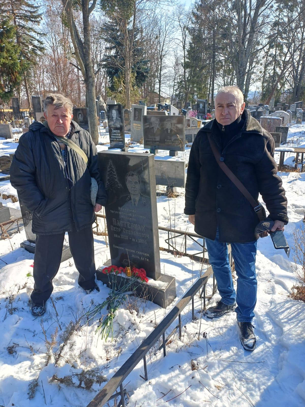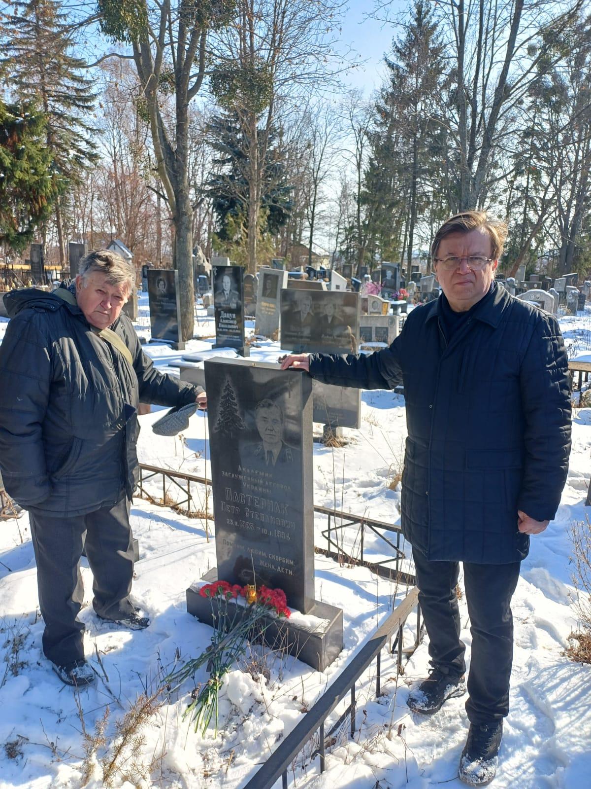 Учні й послідовники П.С. Пастернака — директор УкрНДІЛГА В.П. Ткач, перший заступник директора С.І. Мусієнко та гол.н.с. сектору екології лісу В.П. Ворон на могилі Петра Степановича (23.02.2025)