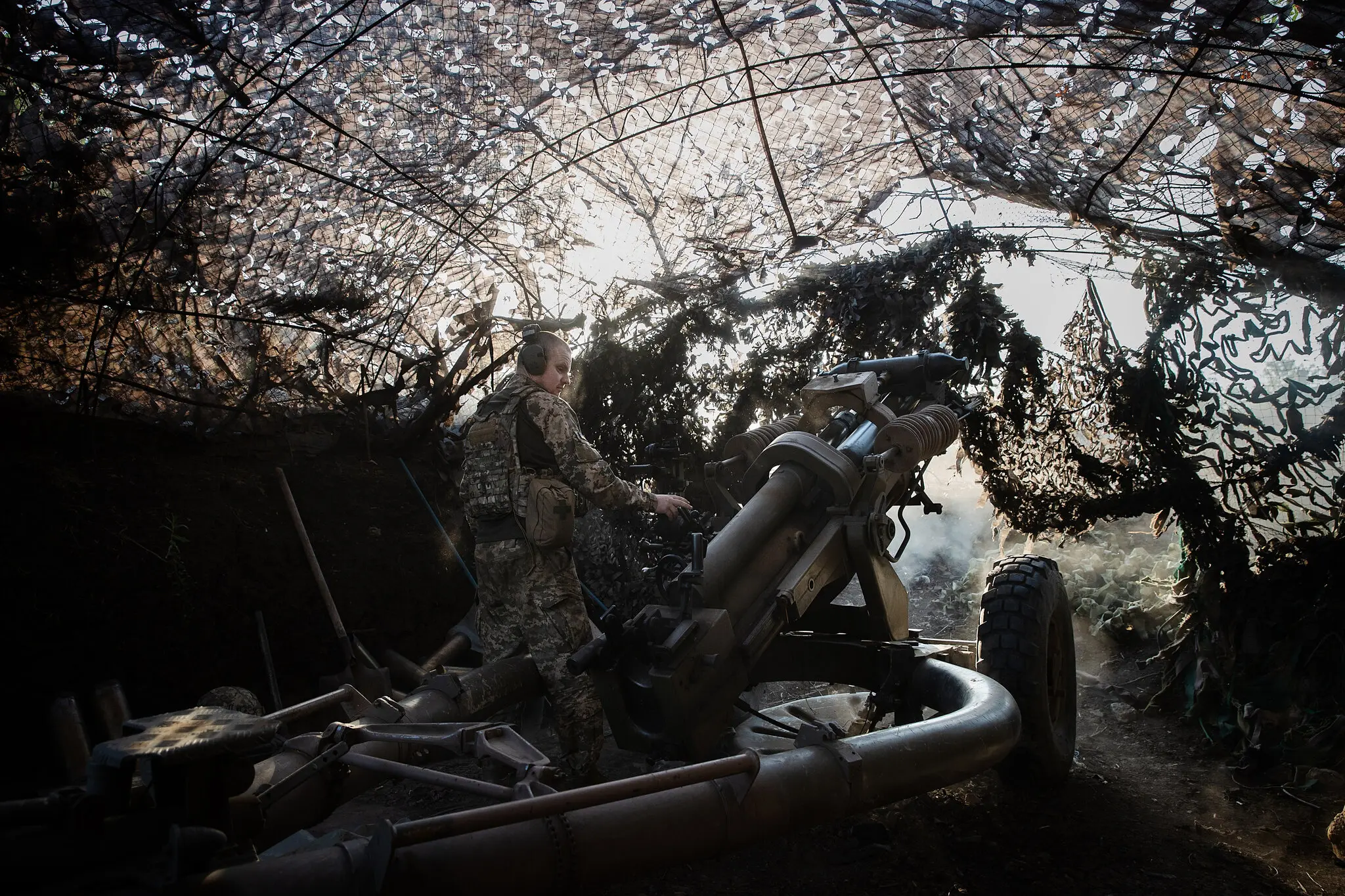 Военнослужащий 79-й десантно-штурмовой бригады Украины ведет огонь по российским войскам в районе Марьинки, Украина, в прошлом году. Фото…Тайлер Хикс/Нью-Йорк Таймс
