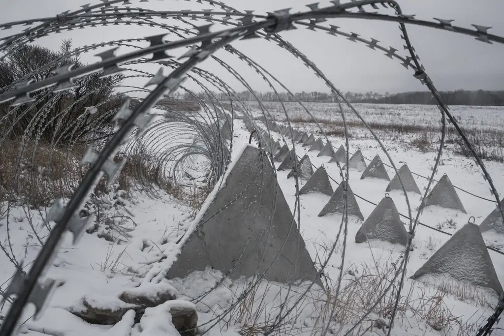 Зубы дракона и колючая проволока укрепляют поле возле ранее оккупированных российскими войсками сел в Харьковской области в декабре. Фото…Маурисио Лима для The New York Times