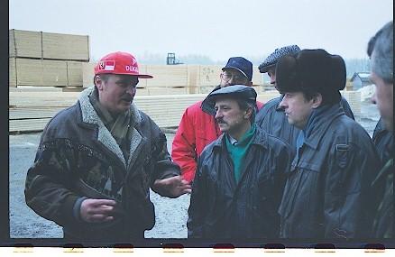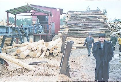Раньше хвойная древесина, если ее можно было выгодно продать, не перерабатывалась. В настоящее время цех предприятия перерабатывает и хвойную древесину. Цех работает в две смены. Проблем с реализацией продукции нет. Лиственный лес идет на изготовление тарной дощечки, мелкий хвойный на стелажи. Переспелая береза идет на производство палет, 1кбм которых стоит 165 DM.