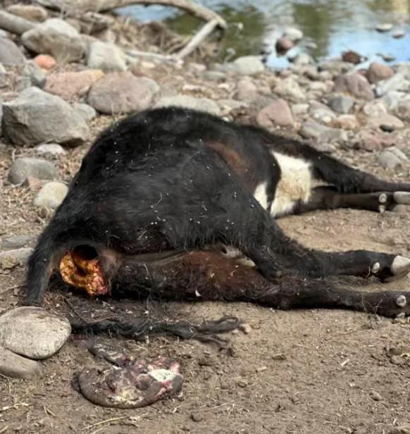 Эта двухлетняя телка была найдена мертвой на ранчо Маккуина 27 марта. Корова только что родила теленка, и волки убили обоих животных. Фото предоставлено Одри Маккуин через Facebook