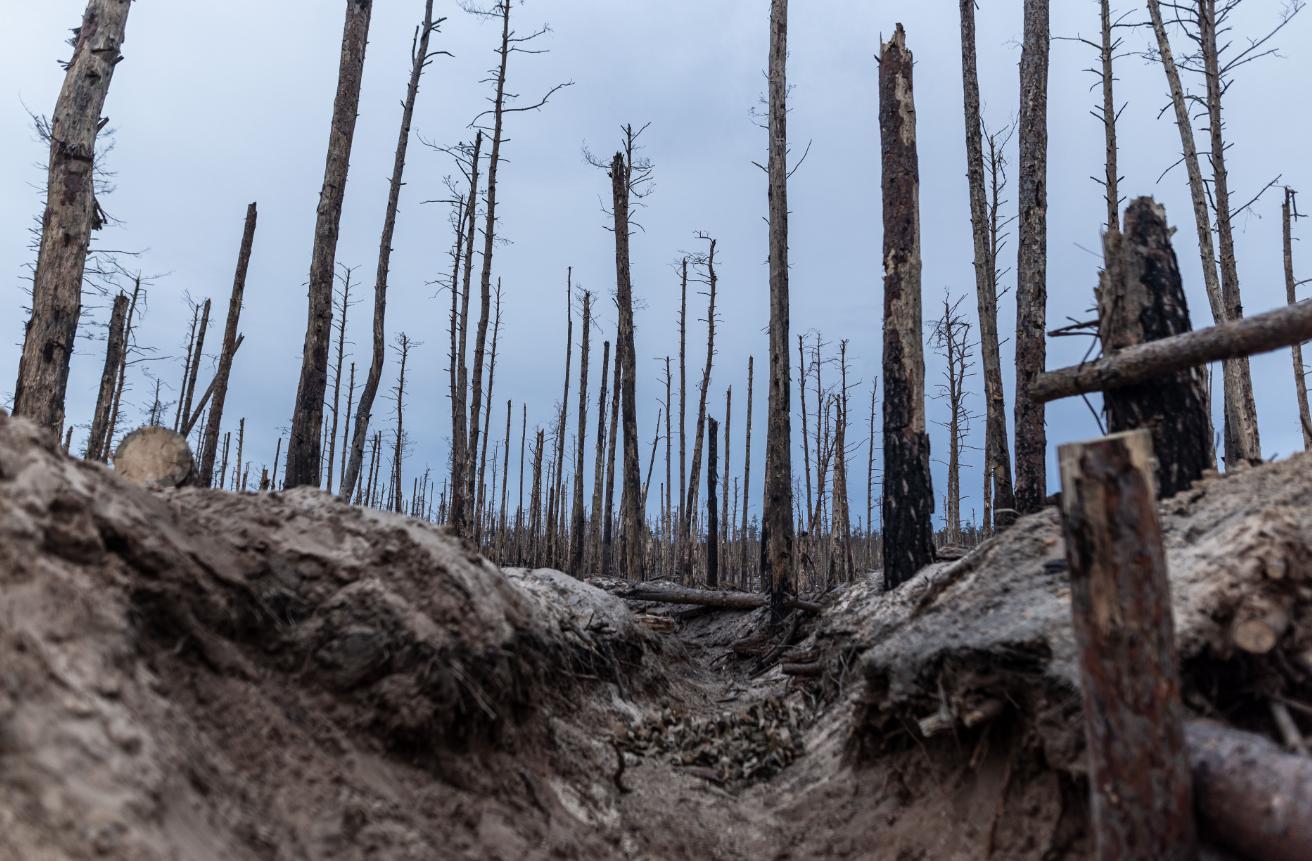 – Серебрянский лес на востоке разделен линией фронта с 2023 года. Он сильно поврежден продолжающимися боями, и ущерб можно отчетливо увидеть сейчас, зимой. Площадь составляет 12 000 гектаров, 80 процентов из них составляют сосны, и все полностью исчезло. По словам Максима Мацалы, часть лиственных деревьев может выжить.