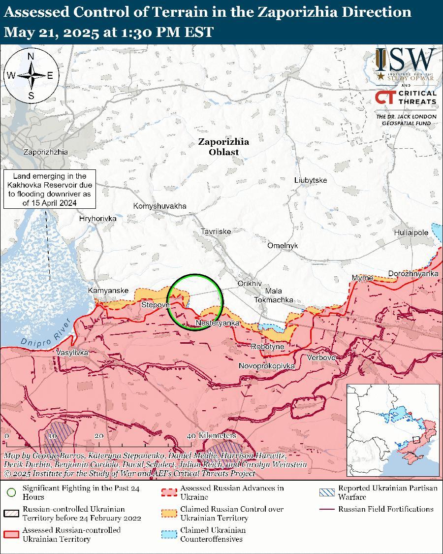 21 мая враг продолжил наступательные действия на Запорожском направлении, но не продвинулся вперед.
