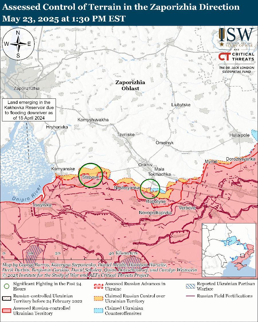 23 мая враг продолжил наступательные действия на Запорожском направлении, но не продвинулся вперед.