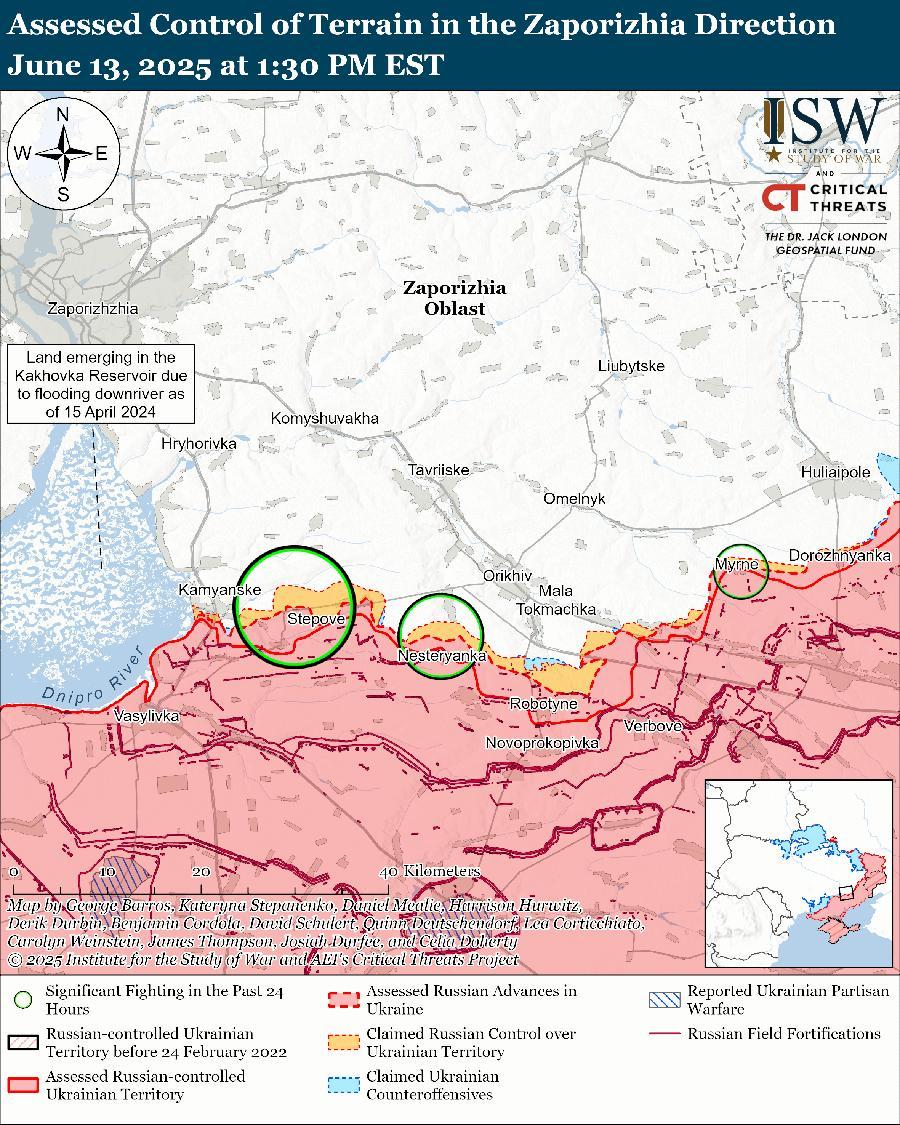 12 и 13 июня враг провел ограниченные наземные штурмы на Херсонском направлении, но не продвинулся вперед. [91]